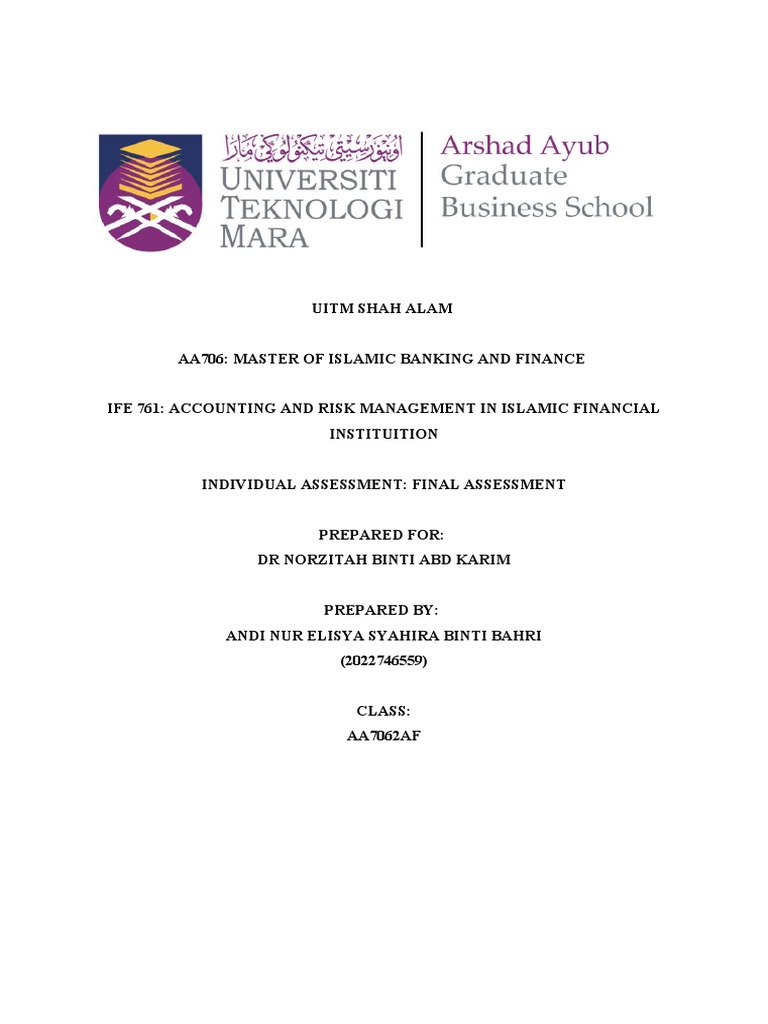 IFE 761: ACCOUNTING AND RISK MANAGEMENT IN ISLAMIC FINANCIAL