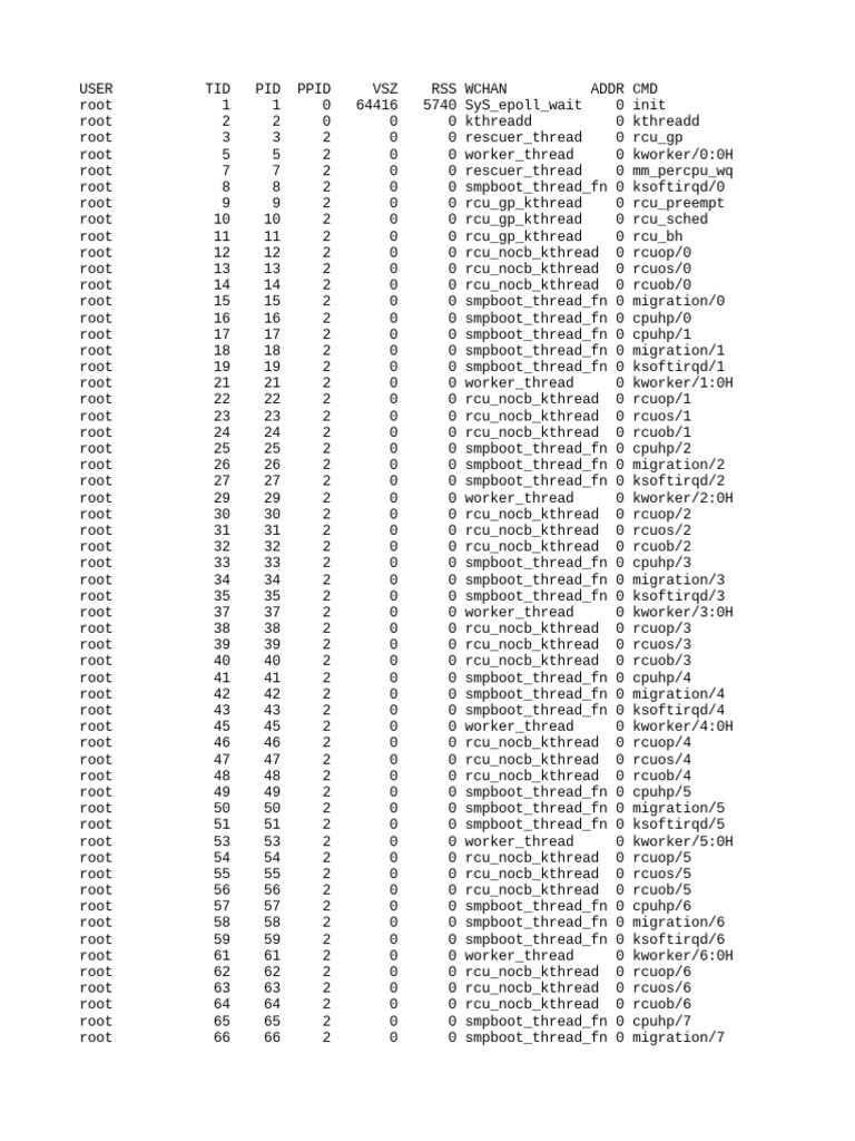 root 2 2 0 0 0 kthreadd 0 kthreadd