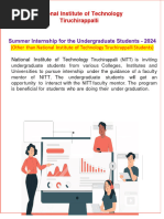 Applications are invited from eligible candidates for Summer Internship Program Under the