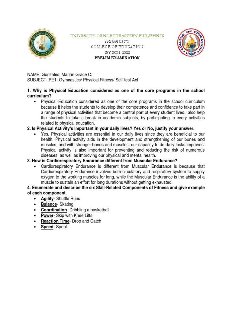 SUBJECT: PE1- Gymnastics/ Physical Fitness/ Self-test Act