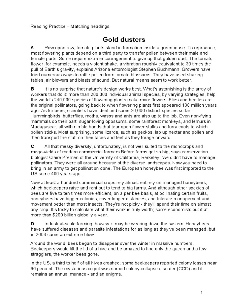 Reading Practice – Matching headings