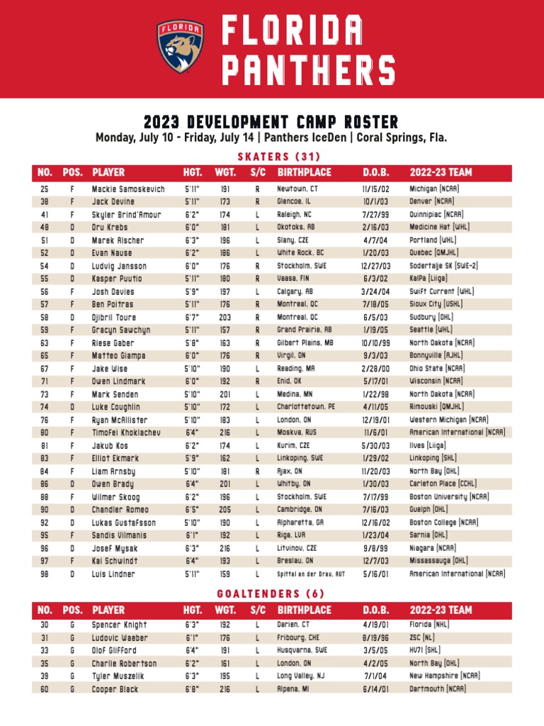25 F Mackie Samoskevich 5'11" 191 R Newtown, CT 11/15/02 Michigan (NCAA)