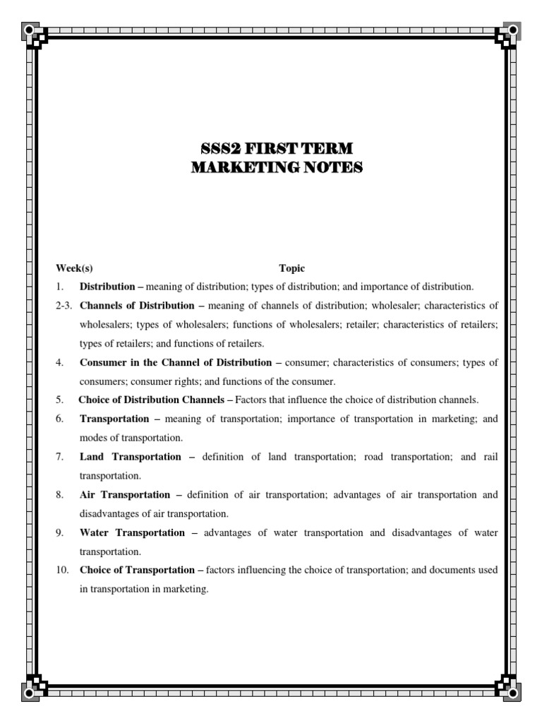 SSS2 First Term Marketing Notes