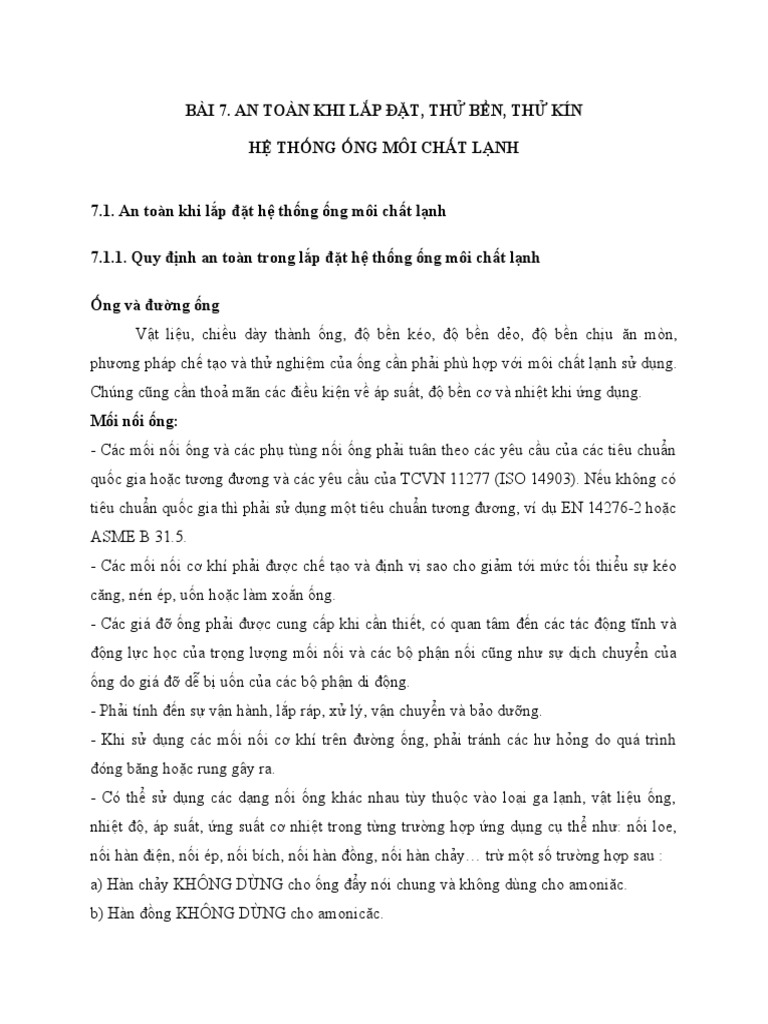 7.1.1. Quy định an toàn trong lắp đặt hệ thống ống môi chất lạnh