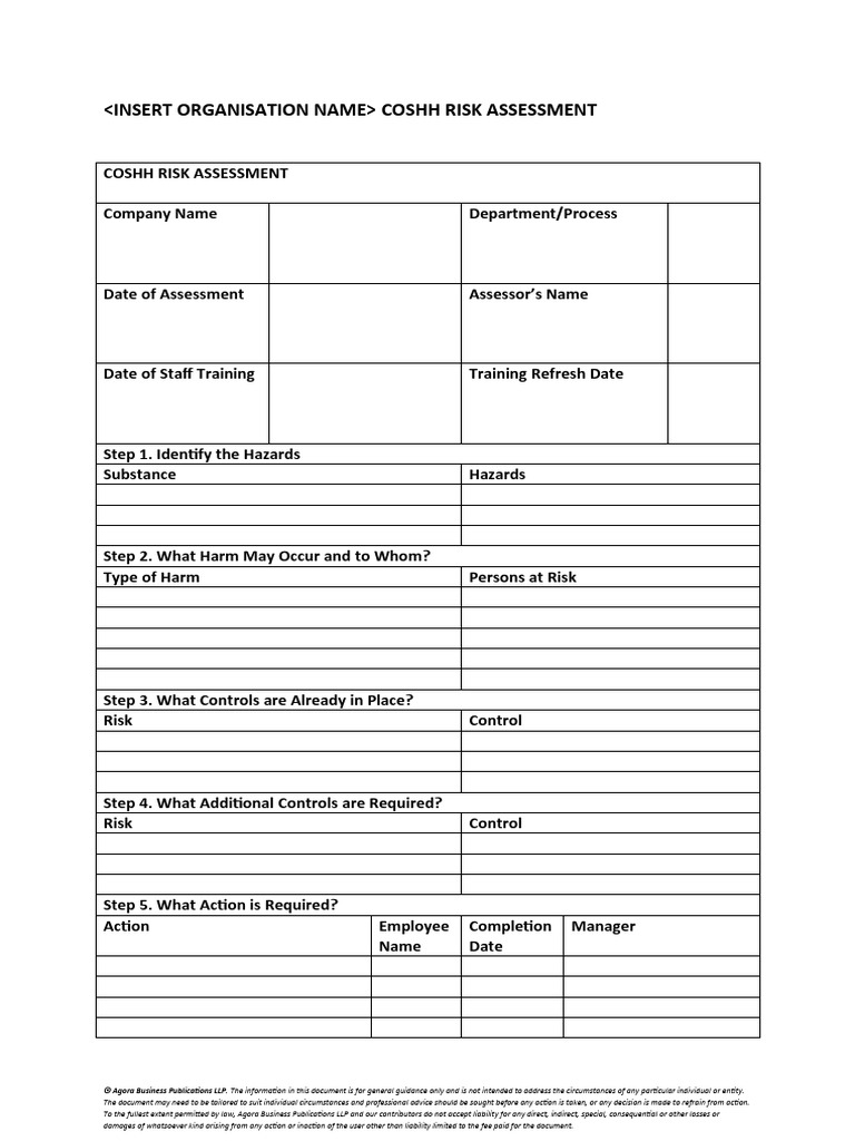 <INSERT ORGANISATION NAME> COSHH RISK ASSESSMENT