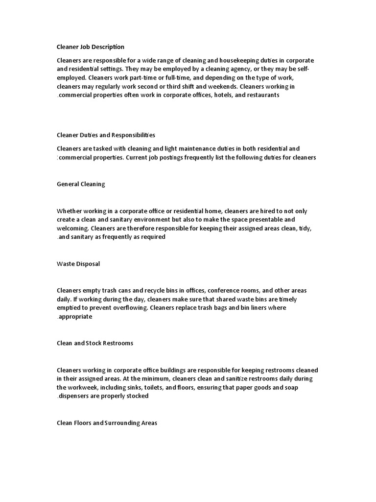 Cleaner Duties and Responsibilities