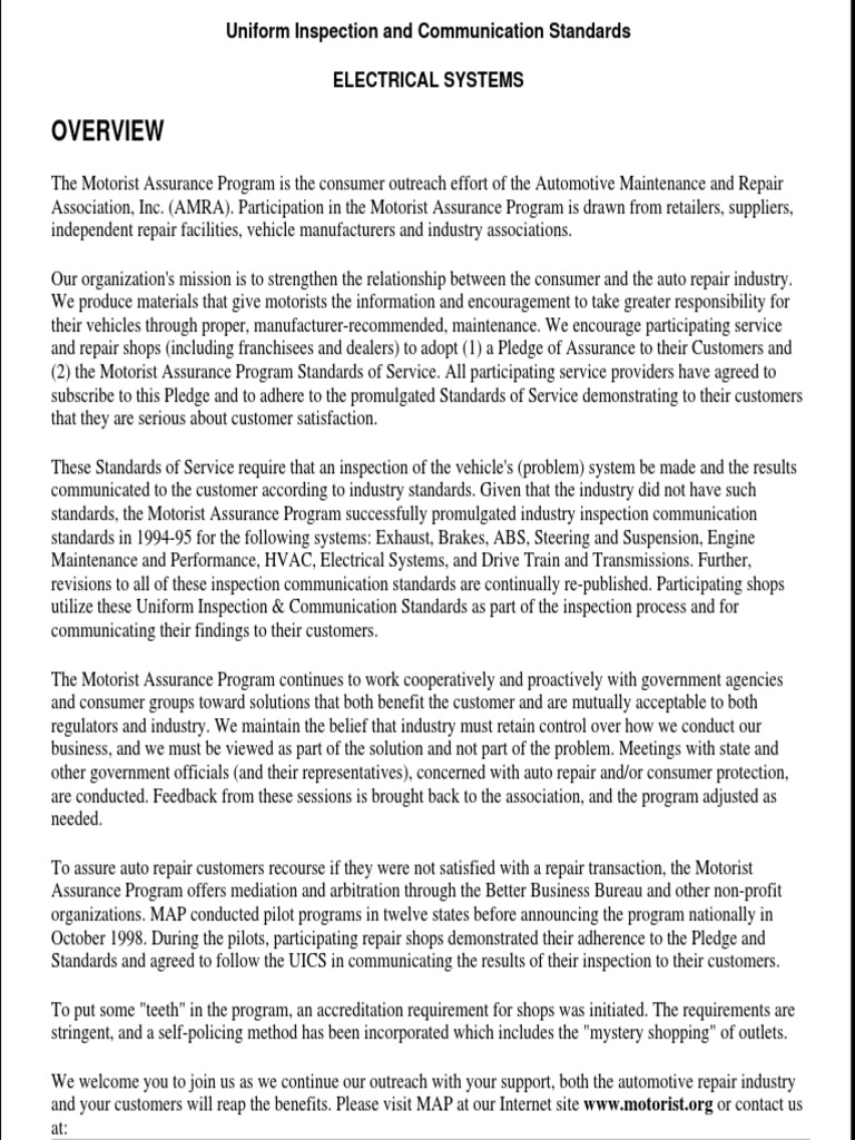 The Motorist Assurance Program is the consumer outreach effort of the Automotive Maintenance and Repair