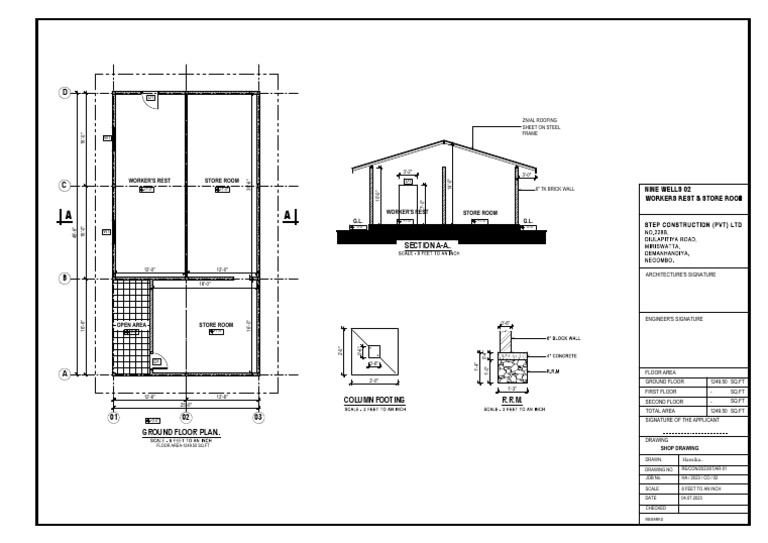 COLUMN FOOTING R.R.M. SECOND FLOOR - SQ.FT
