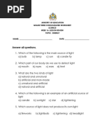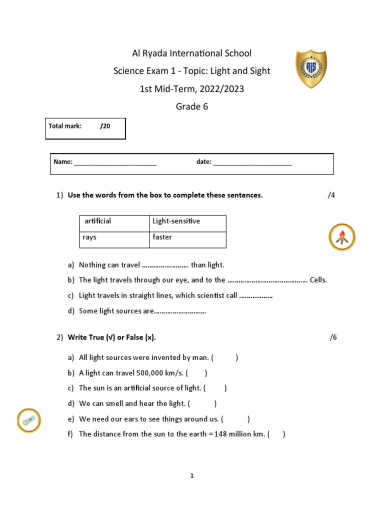Science Exam 1 - Topic: Light and Sight