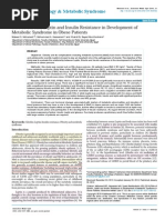 Cancer Insulin resistance with compensatory hyperinsulinaemia has been implicated in the aetiology of certain cancers, including colon, endometrial, possibly pancreatic and renal-cell cancers122 and breast cancer.3 In the case of colonic cancer it is proposed that insulin resistance leads to hyperinsulinaemia with elevated IGF-1 levels promoting intestinal epithelial cell proliferation; alterations in NF-B and peroxisome proliferator activated receptor signalling may also inuence colonocyte kinetics.123 In addition to mitogenic effects of insulin itself, the effects of insulin resistance on ovarian function and sex hormone metabolism, along with low levels of SHBG potentially elevating bio-available hormone levels, may also contribute to carcinogenesis.124 OSA OSA is generally regarded as a complication of obesity manifested by mechanical obstruction to the upper respiratory tract during sleep. However there is some evidence suggesting that OSA may be a systemic condition related to insulin resistance.3 However the resultant sleep fragmentation and hyperarousal may promote insulin resistance via activation of the HPA axis.125 Sympathetic nervous system hyperactivity has also been reported in OSA.126 Treatment of OSA by nasal continuous positive airway pressure preferentially decreases visceral adipose tissue.127 Whilst these studies do not preclude insulin resistance as a contributor to OSA, there are several mechanisms, described above, by which OSA might contribute to insulin resistance. Measurement of Insulin and Insulin Resistance There are a variety of approaches to the laboratory assessment of insulin resistance. Over the years the limited specicity of older radio-immunoassays that cross-react with proinsulin have reduced the credibility of measuring insulin resistance in clinical settings. Current assays have improved specicity and precision. A comprehensive review of insulin assays is beyond the scope of this review and the reader is encouraged to consult Sapin128 in this regard. Insulin resistance may be measured by looking directly at insulin mediated glucose uptake in the basal or post-stimulated state, by inference from the relative concentrations of glucose and insulin, or by looking at surrogate markers of insulin action. Research Methods The most accepted methods for measuring insulin resistance are limited to research settings due to their invasiveness and complexity. The clamp studies specically measure insulin mediated glucose uptake under controlled conditions. These include the euglycaemic clamp (considered the gold standard) and the hyperinsulinaemic clamp. Less invasive are the insulin sensitivity test and short insulin tolerance test. Less direct