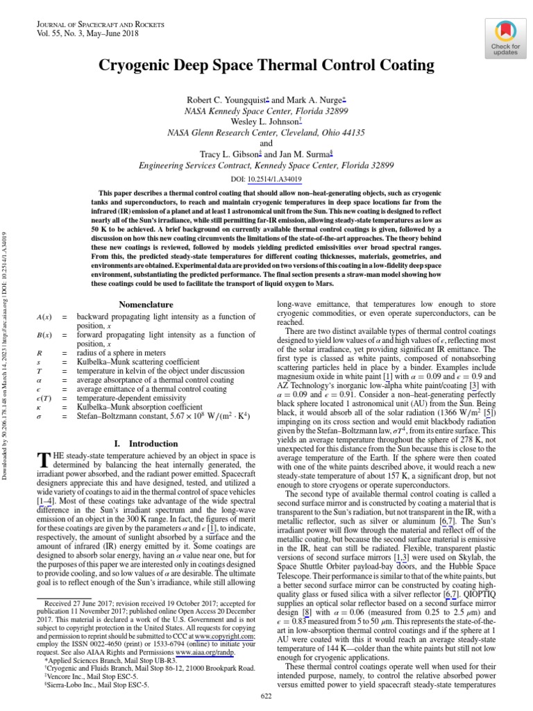 Cryogenic Deep Space Thermal Control Coating: Ournal of Pacecraft and Ockets