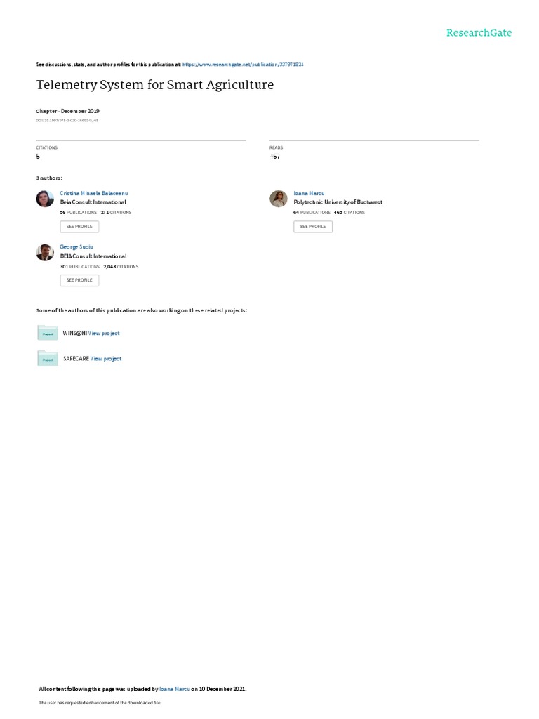 Keywords: Agriculture Irrigation IoT Telemetry system Meteorological