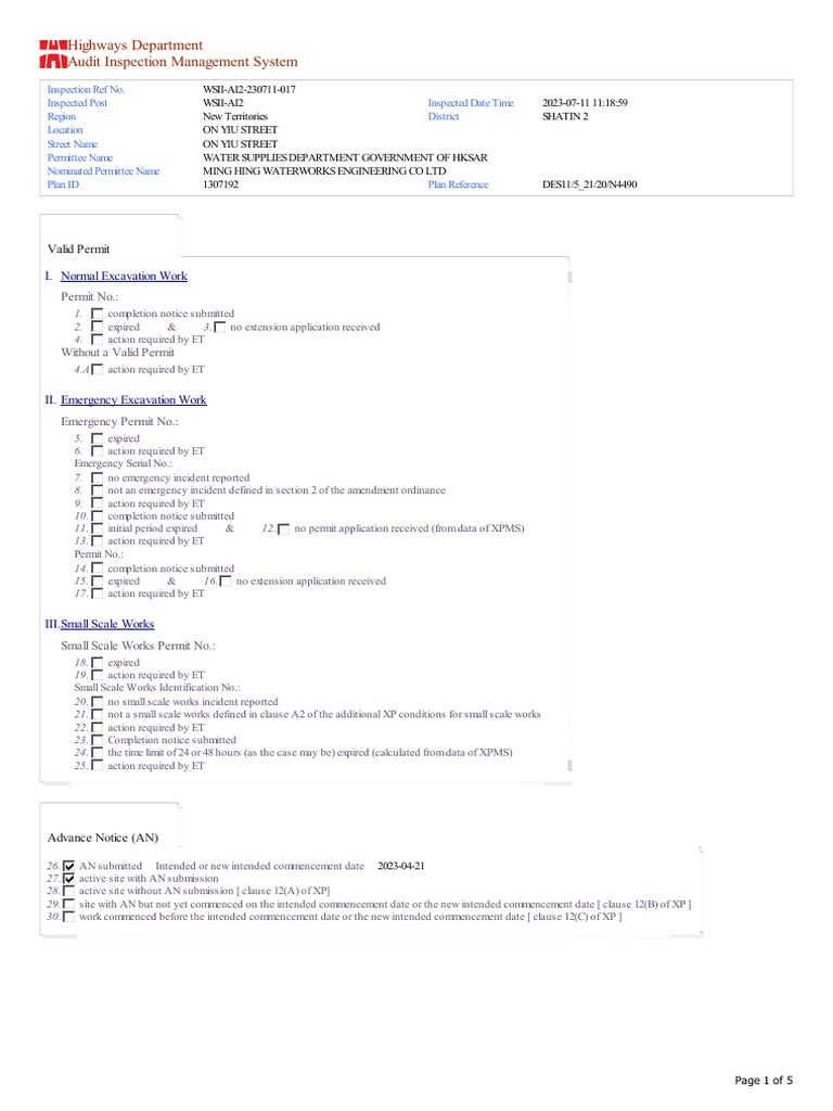 Inspection Ref No. WSII-AI2-230711-017