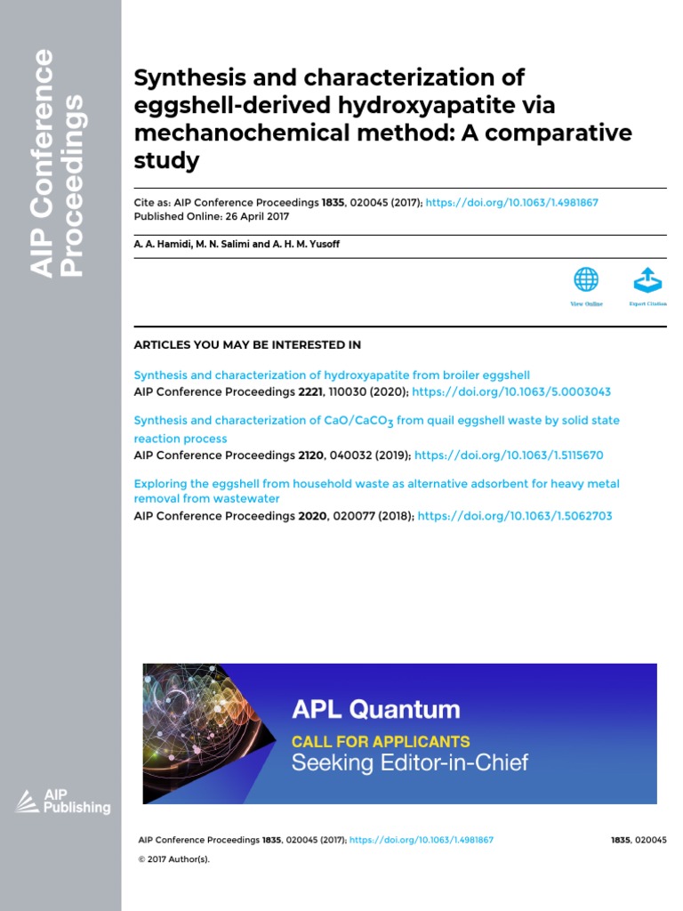 Synthesis and characterization of hydroxyapatite from broiler eggshell
