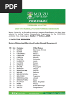 FIRST YEAR UNDERGRADUATE ADMISSIONS: AUGUST 2023