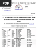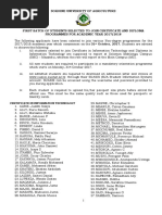 ADMISSION INTO THE UNDERGRADUATE BACHELOR OF TECHNOLOGY HONOURS DEGREE PROGRAMMES FOR THE
