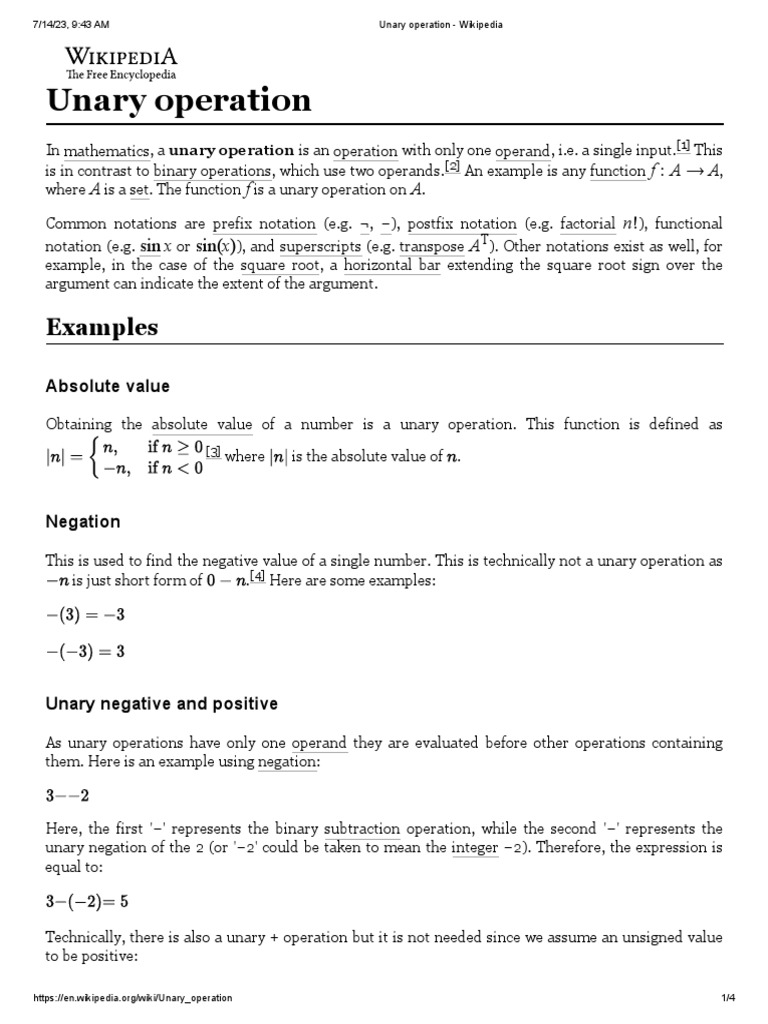 https://en.wikipedia.org/wiki/Unary_operation 1/4