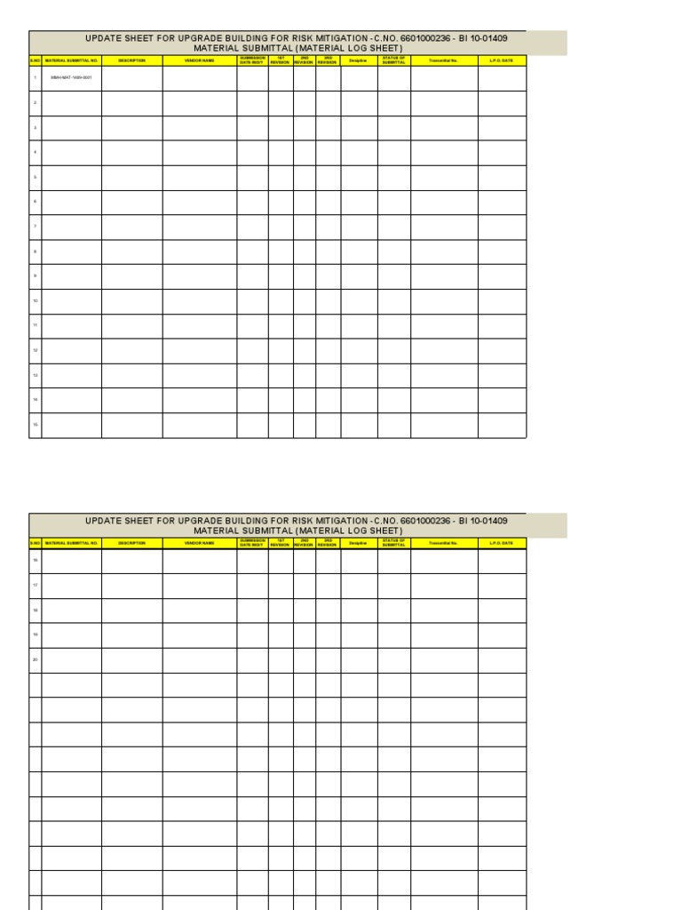MATERIAL SUBMITTAL (MATERIAL LOG SHEET)