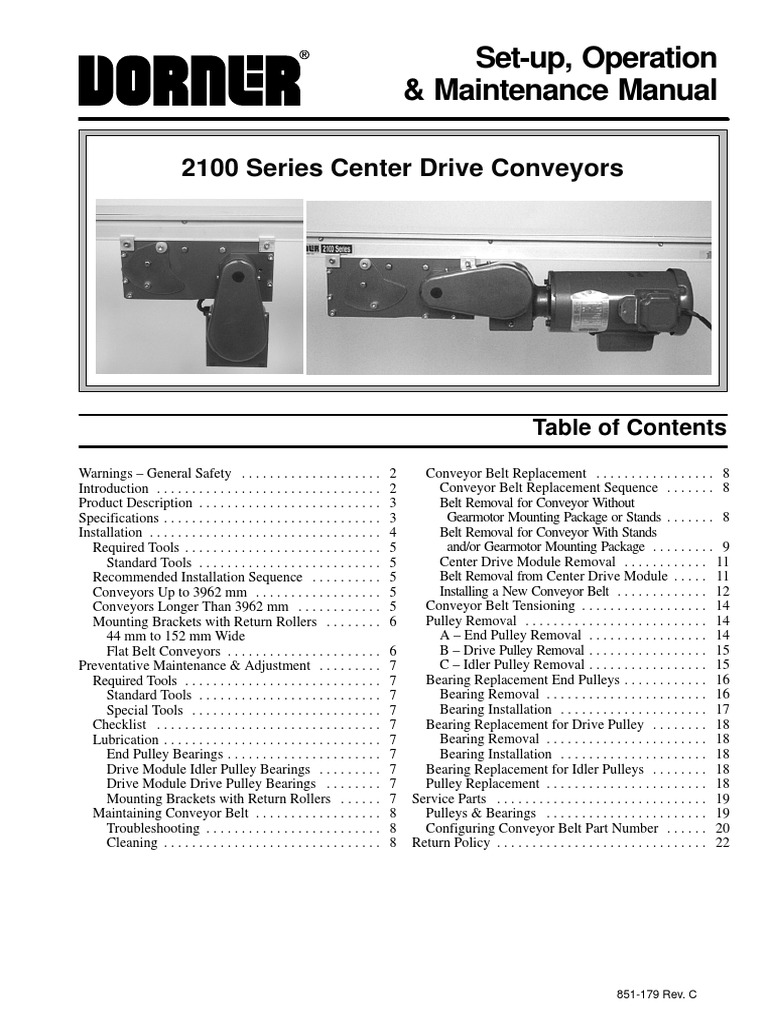 Dorner Mfg. Corp. 21 851-179 Rev. C