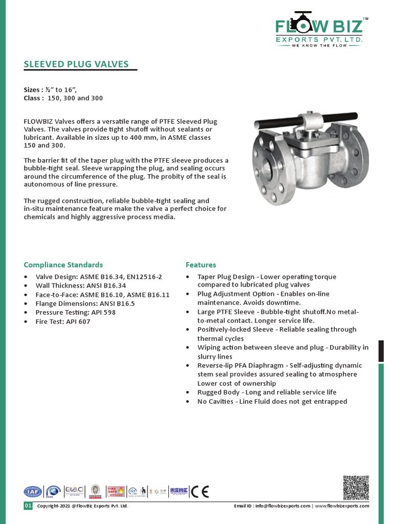 FLOWBIZ Valves offers a versatile range of PTFE Sleeved Plug