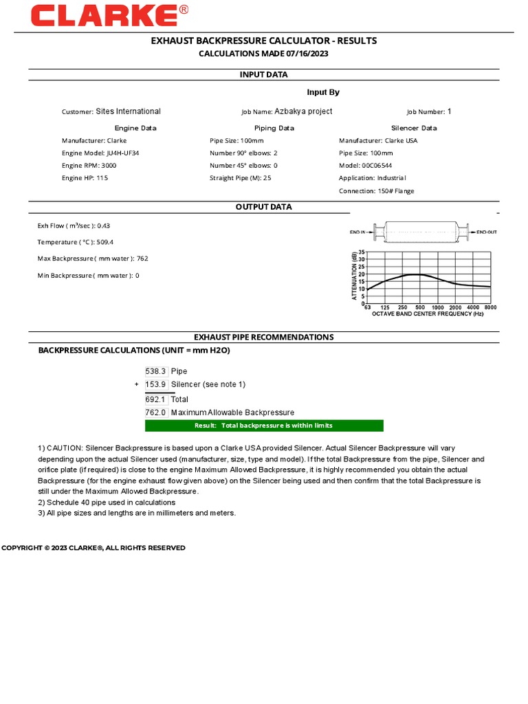 Backpressure (for the engine exhaust flow given above) on the Silencer being used and then confirm that the total Backpressure is