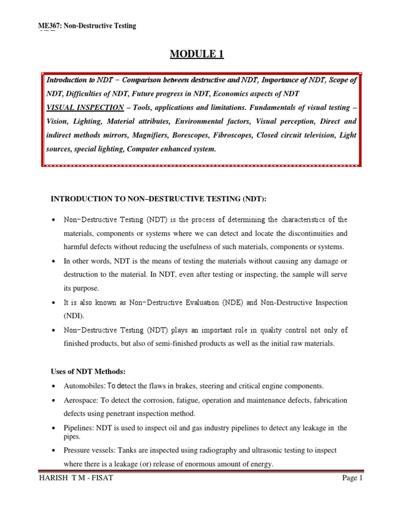 INTRODUCTION TO NON–DESTRUCTIVE TESTING (NDT):
