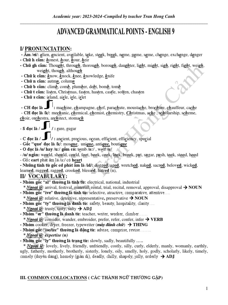 Academic year: 2023-2024 -Compiled by teacher Tran Hong Canh