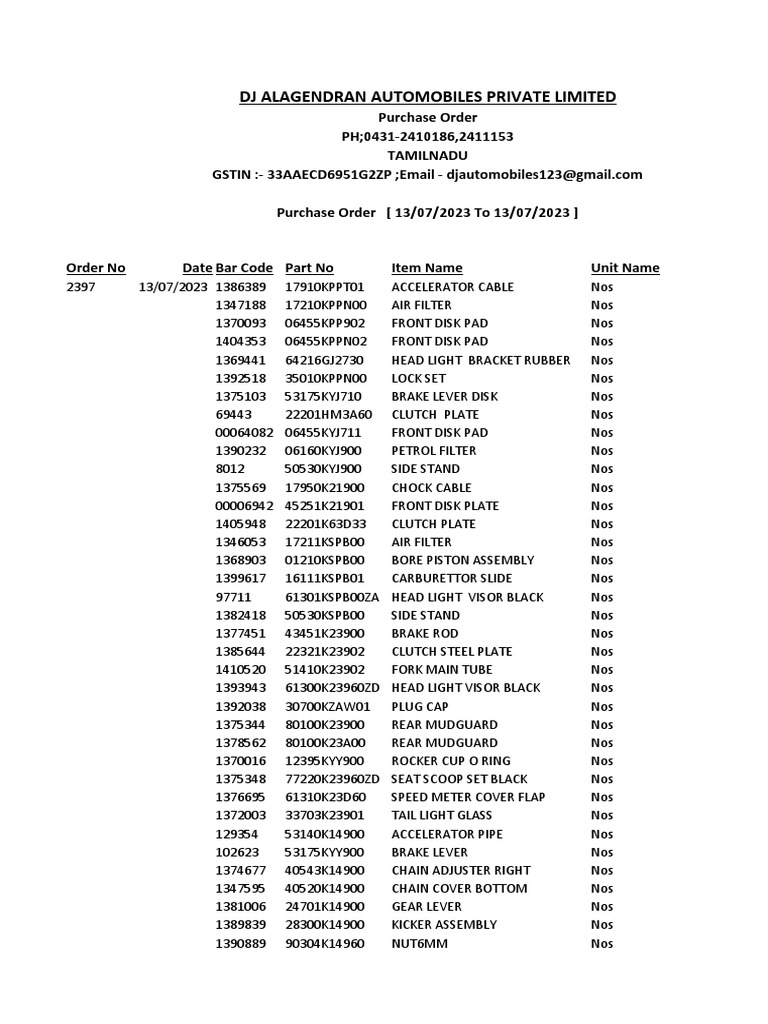 Purchase Order [ 13/07/2023 To 13/07/2023 ]
