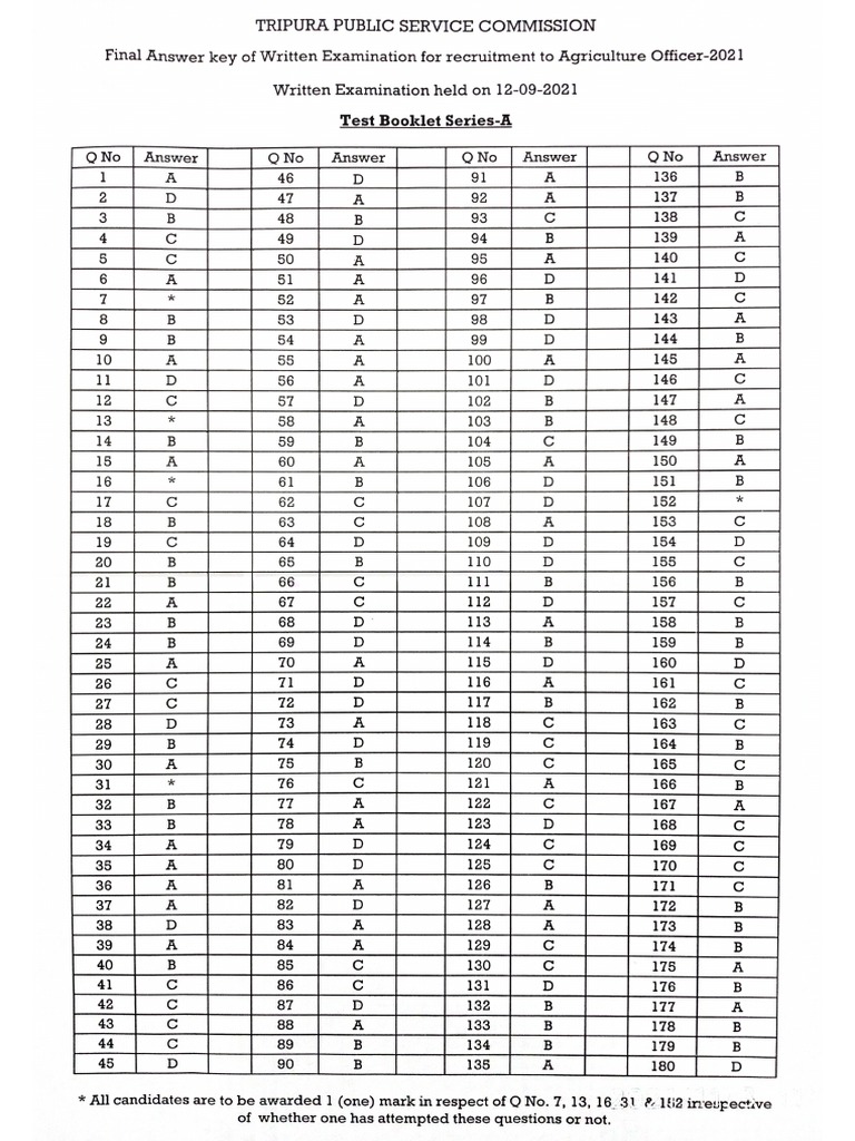 of whether one has attempted these questions or not.‘TRIPURA PUBLIC SERVICE COMMISSION