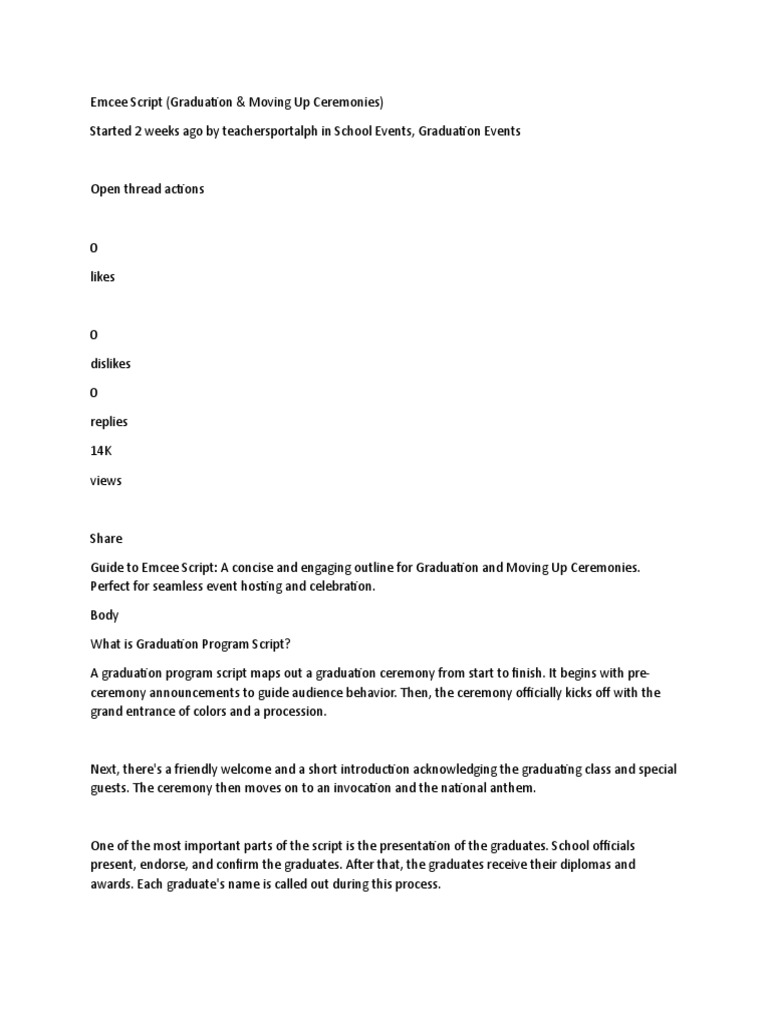 Guide to Emcee Script: A concise and engaging outline for Graduation and Moving Up Ceremonies.