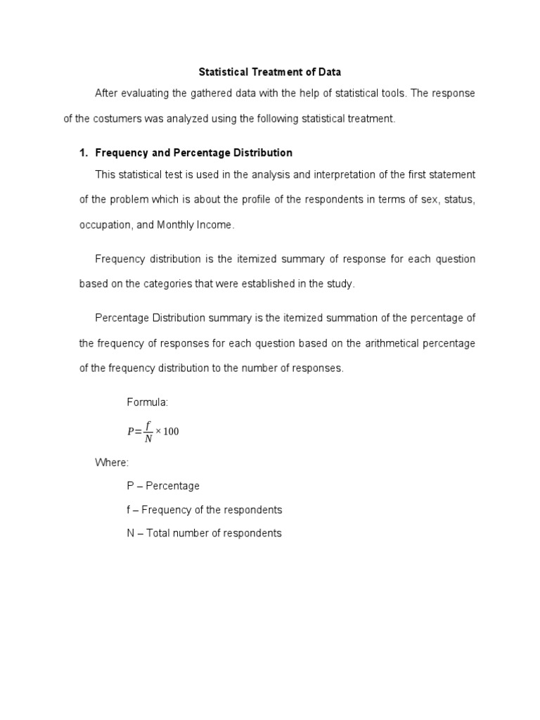 of the costumers was analyzed using the following statistical treatment.