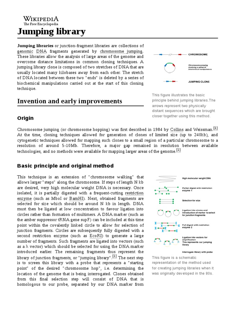 Chromosome jumping (or chromosome hopping) was first described in 1984 by Collins and Weissman.[1]