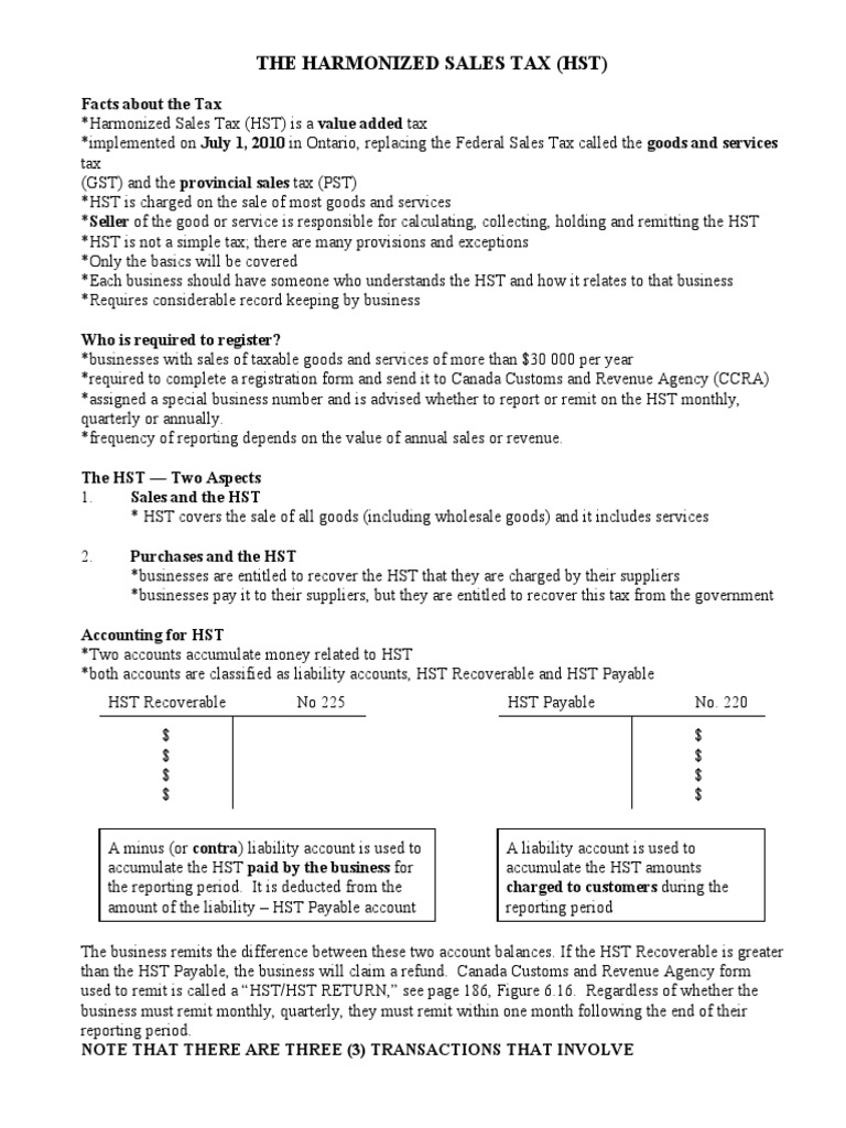 THE HARMONIZED SALES TAX (HST)