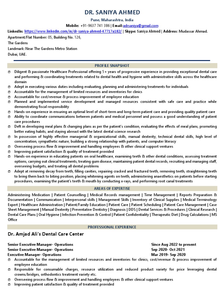 LinkedIn: [Link] | Skype: Saniya Ahmed | Address: Mudassar Ahmad.