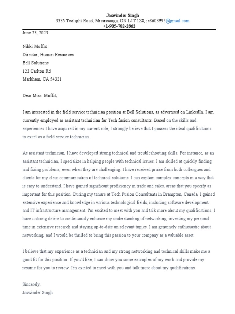 I am interested in the field service technician position at Bell Solutions, as advertised on LinkedIn. I am