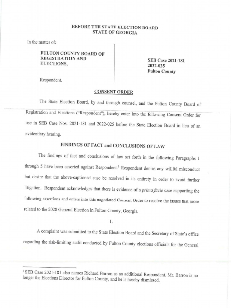 Signed - Consent Order SEB 2021-181 and 2022-025 (Fulton County) With Exhibit A - Redacted