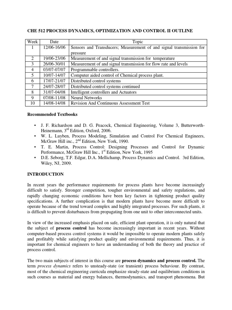 requirements. The subject of process control is concerned with how to achieve these goals. In