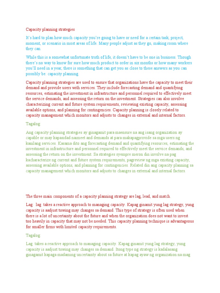 assessing available options, and planning for contingencies. Related din ang capacity planning sa