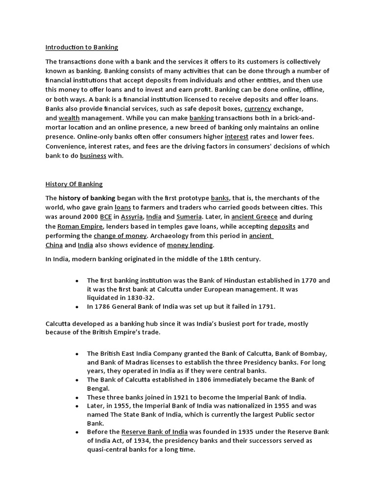 History Of Banking