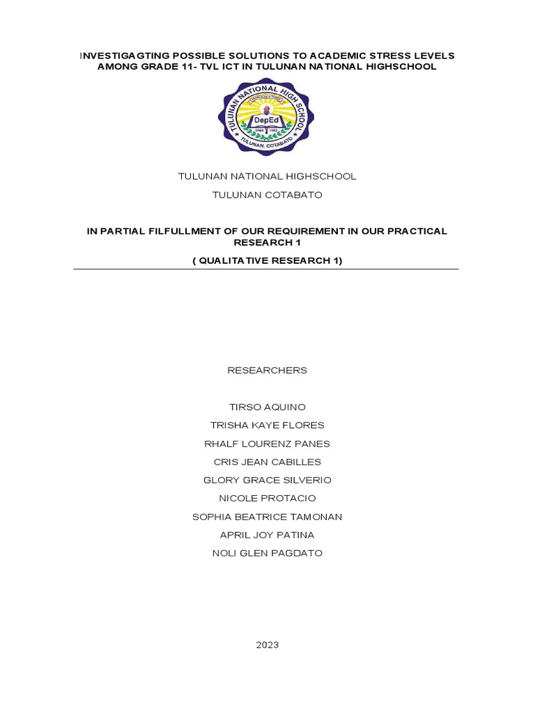 AMONG GRADE 11- TVL ICT IN TULUNAN NATIONAL HIGHSCHOOL