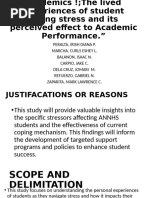 •What are the coping mechanisms used by grade 7 learners in Caloocan City Science High School to