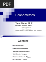 In statistics, maximum likelihood estimation (MLE) is a method of estimating the parameters of an assumed probability
