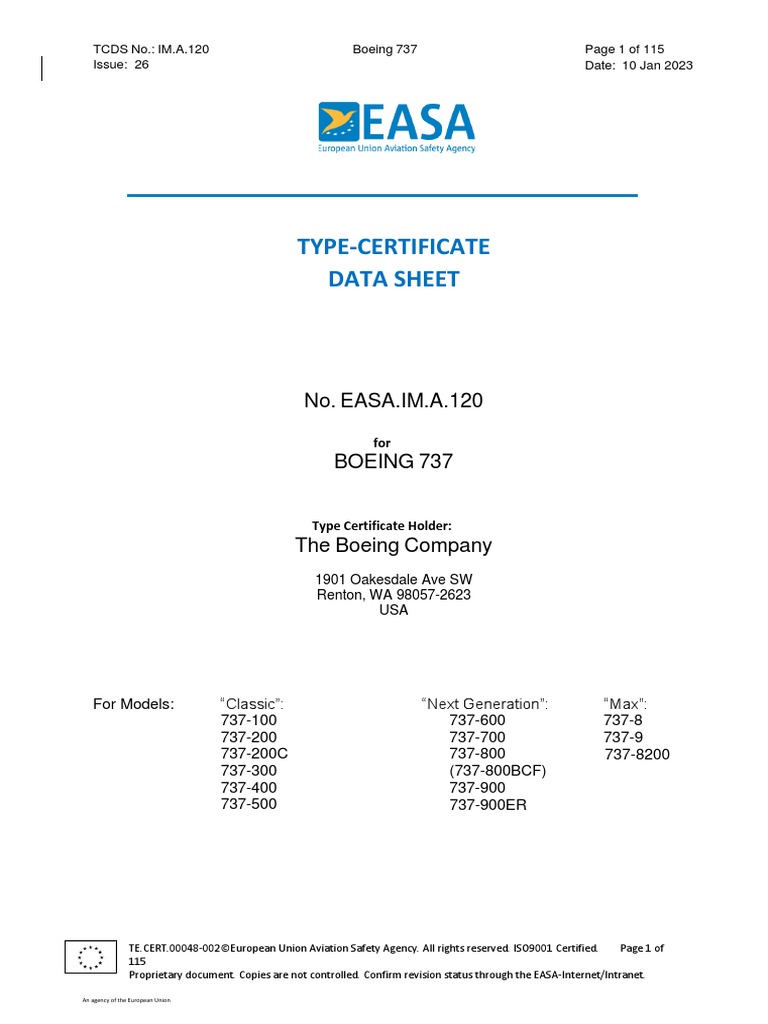 TCDS No.: IM.A.120 Boeing 737 Page 2 of 115