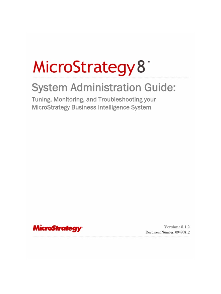 MicroStrategy System Administration Guide Concepts and high-level steps to implement, deploy, maintain, tune, and troubleshoot a MicroStrategy business intelligence system.