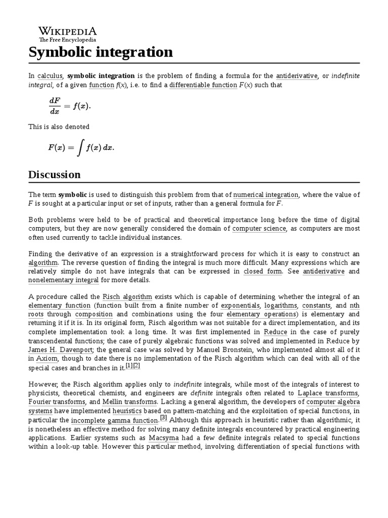 The term symbolic is used to distinguish this problem from that of numerical integration, where the value of