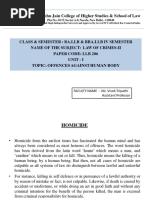 of another human is not approved or justified by law. Culpable Homicide is in this category. Culpable means blame worthy. Thus,
