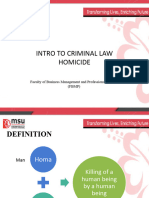 The word homicide is derived from two Latin words - homo and cido. Homo means human and cido means killing by a human. Homicide