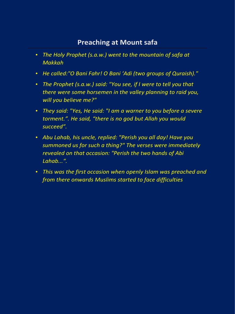• The Holy Prophet (s.a.w.) went to the mountain of safa at
