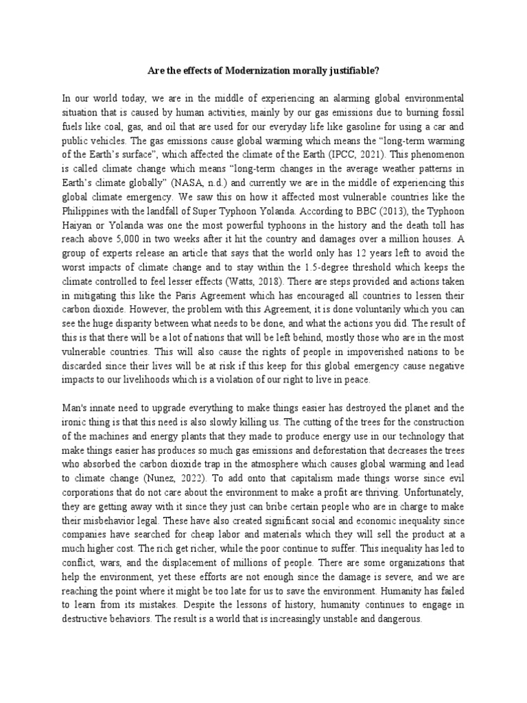 to climate change (Nunez, 2022). To add onto that capitalism made things worse since evil