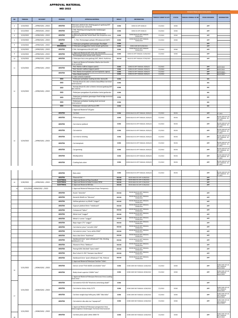 1. Approval Material Pek. Lantai Vinyl DONE DONE BALIK KE-APP TANGGAL 30/06/22 7/6/2022 DONE APP DONE DARI AP1 KE-APP TANGGAL 29/07/2022